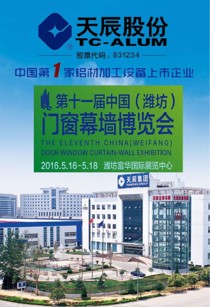 2016年5月16日上午,第十一屆中國(濰坊)門窗幕墻博覽會在山東富華國際展覽中心隆重開幕。此次展會由山東省建設機械協(xié)會、山東省房地產(chǎn)業(yè)協(xié)會、山東省勘察設計協(xié)會三大協(xié)會首次攜手主辦,是一場空前的全國規(guī)模宏大的行業(yè)盛會!