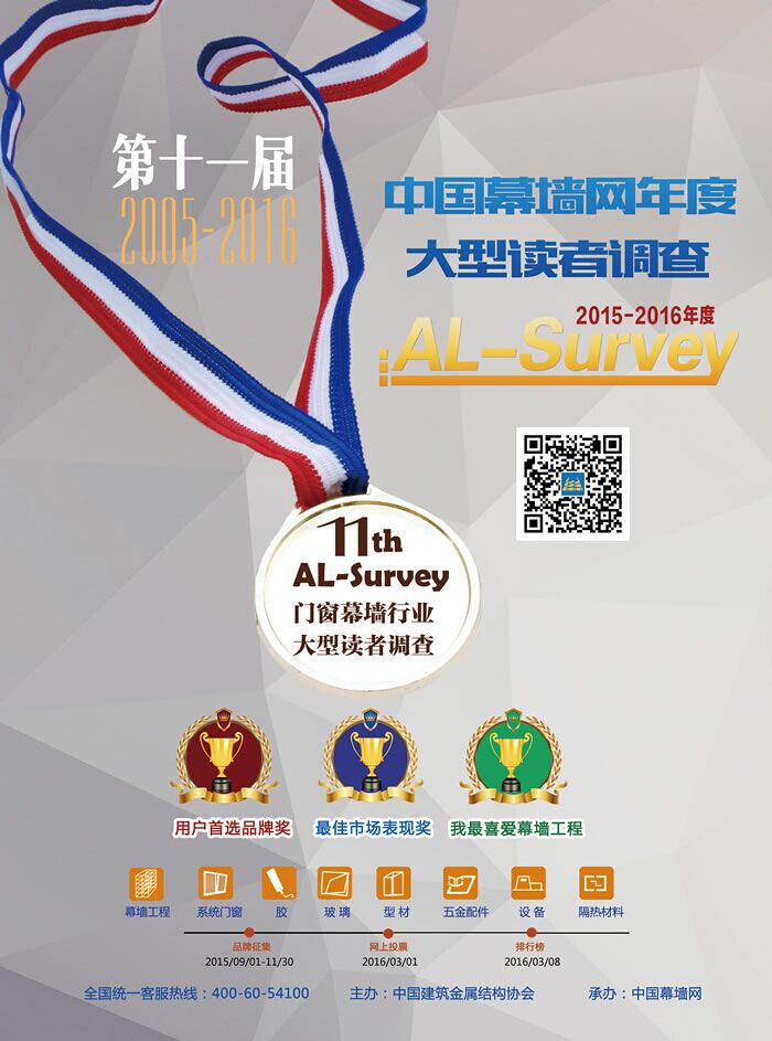 ????? “AL”是鋁門窗幕墻委員會(huì)aluminum的英文開頭首母,“AL”還代表鋁的元素符號,同時(shí),“AL”是中國幕墻網(wǎng)域名ALwindoor的簡寫,“Survey”則代表調(diào)查。