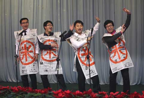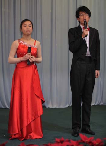 此次聯(lián)歡會(huì)由青春靚麗的新人擔(dān)任主持,聯(lián)歡會(huì)在鋁機(jī)公司趙美東的《歡樂(lè)中國(guó)年》中帷幕,車庫(kù)公司何琦深情款款的男聲獨(dú)唱《沒(méi)離開(kāi)過(guò)》聽(tīng)得大家意猶未盡;劉文嬋和王佳自編自演的相聲《普通話》妙趣橫生,引得臺(tái)下爆笑不斷;男聲小合唱《換大米進(jìn)行曲》詼諧幽默的表演贏得大家陣陣掌聲;由領(lǐng)導(dǎo)參與《猜成語(yǔ)》的互動(dòng)游戲把現(xiàn)場(chǎng)的氣氛推向了高潮;時(shí)尚動(dòng)感的街舞、情感真摯的自彈自唱《老男孩》,以及超高難度的和聲《威廉退爾序曲》等精彩節(jié)目接二連三目不暇接;壓軸舞蹈《荷塘月色》以其精湛的表演取得了滿場(chǎng)喝彩。